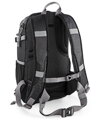 Kompresní popruhy. Boční kapsy a vnitřní kapsa z elastické síťoviny. Boční kapsa na zip. Reflexní prvky. Smyčka pro připevnění zadního světla. Držadlo. Kombinace polyesteru 600D/Ripstopu.