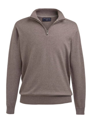 Svetr s nízkým stojáčkem ze směsi 50 % merino vlna a 50 % bavlna. 1/4 zip YKK. Elastický spodní lem a manžety. Nízký límec. V nabídce až 7 barev. Čtěte více